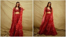 メイクアップ アーティストの Mehak Oberoi の助けを借りて、Sharvari はヌード アイシャドウ、黒のアイライナー、黒のコール、マスカラたっぷりのまつげ、描かれた眉毛、輪郭を描いた頬、ヌードの口紅の色合いで着飾った. (Instagram/@sharvari)